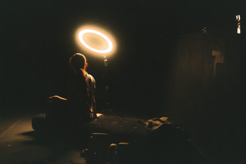 Un solo en procés de creació que construeix un paisatge plàstic des del cos i la presència. María Jurado presenta al Mercat Angelical, peça en què temps, converses i rastres de nostàlgia conviuen per confondre la línia entre immobilitat i moviment, entre pausa i la tensió que generen la precarietat i l’alienació quotidiana. La creació es desplega com un oasi temporal, una al·lucinació escènica que insisteix en la materialitat del gest i en la capacitat del solo per generar un món propi. Així és Jurado, artista i coreògrafa que transita entre la dansa conceptual i la performance, i que converteix cada solo en una geografia íntima.