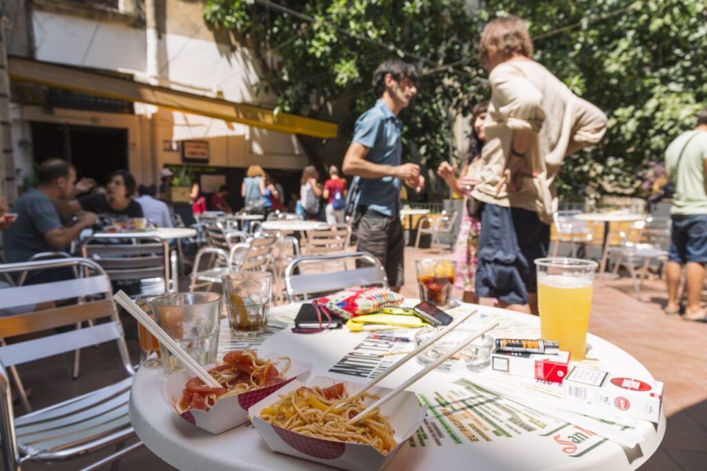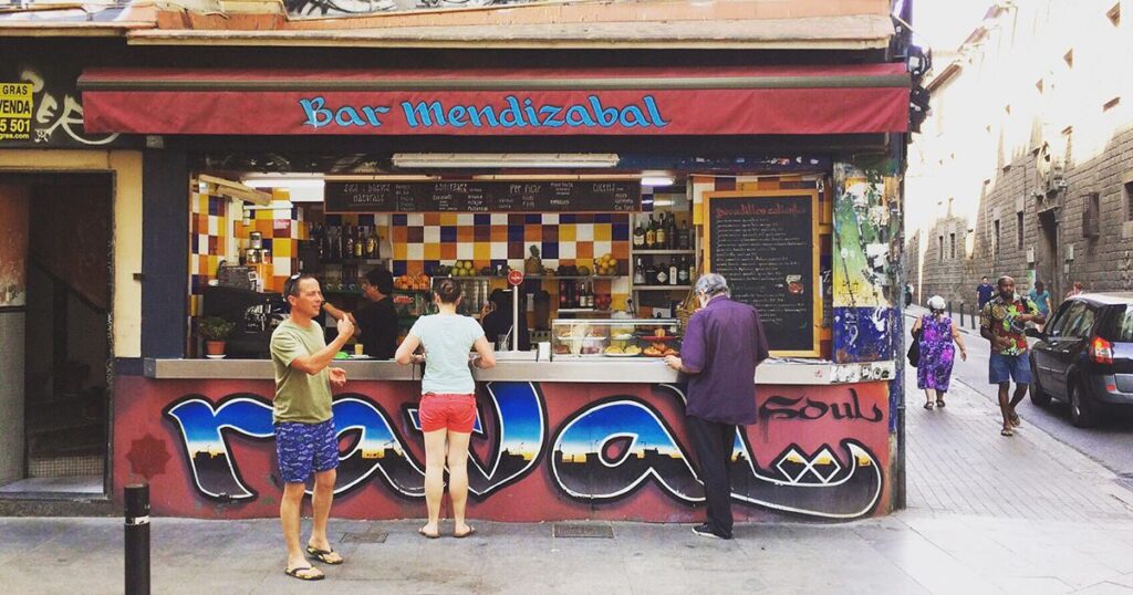 Hi ha establiments que per la seva ubicació i singularitat no tenen rival. Ningú pot anar al Teatre Romea o a la Biblioteca de la Perla sense passar pel Bar Mendizábal (Junta de Comerç, 2). La barra que dona directa al carrer és com un imant d’humanitat en cru, i entre les ombres de la veïna terrassa s’han desenvolupat durant dècades les bases de la crítica més múrria. Ah, per descomptat, destacar els entrepans: irresistible el de brie, mango i pernil salat. Per llepar-se els dits.